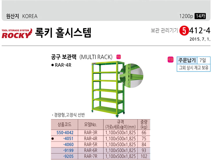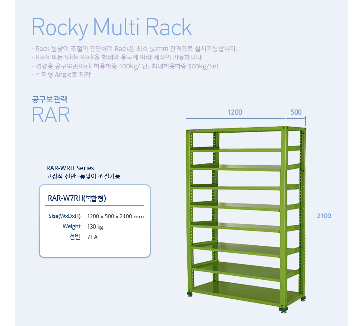 [·ÏŰ/ROCKY]°ø±¸º¸°ü·¢(RAR-W7RH, ¿ÍÀÌµå º¹ÇÕÇü °íÁ¤½Ä¼±¹Ý 7°³, 1200x500x2100mm)(Multi Rack)