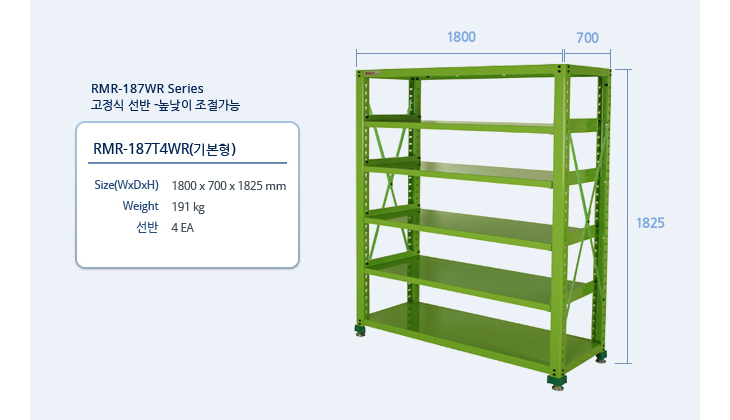 [·ÏŰ/ROCKY]Áß·®Çü ³ÐÀºÆø °ø±¸º¸°ü·¢(RMR-187T4WR, °íÁ¤½Ä¼±¹Ý 4°³, 1800x700x1825mm)(Multi Rack)