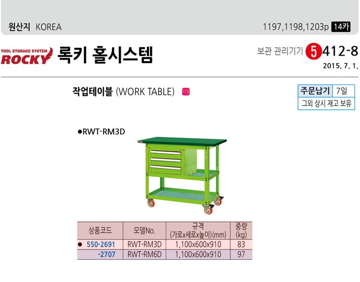 [·ÏŰ/ROCKY]ÀÛ¾÷´ë/ÀÛ¾÷Å×À̺í(RWT-RM3DB1P, À̵¿½Ä, 1100x600x1410mm)(Work Table)