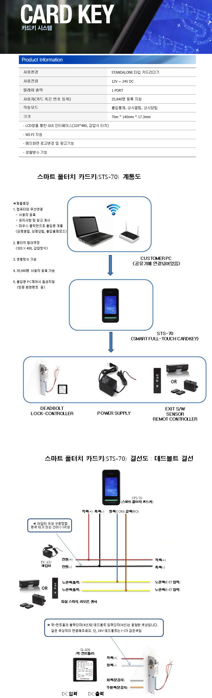 [SU] ÃâÀÔÅëÁ¦ ´Üµ¶Çü Ç®ÅÍÄ¡ Ä«µå¸®´õ(STS-70, ÅÍÄ¡½Ä, WIFIÁö¿ø)(Standalone Card Reader)