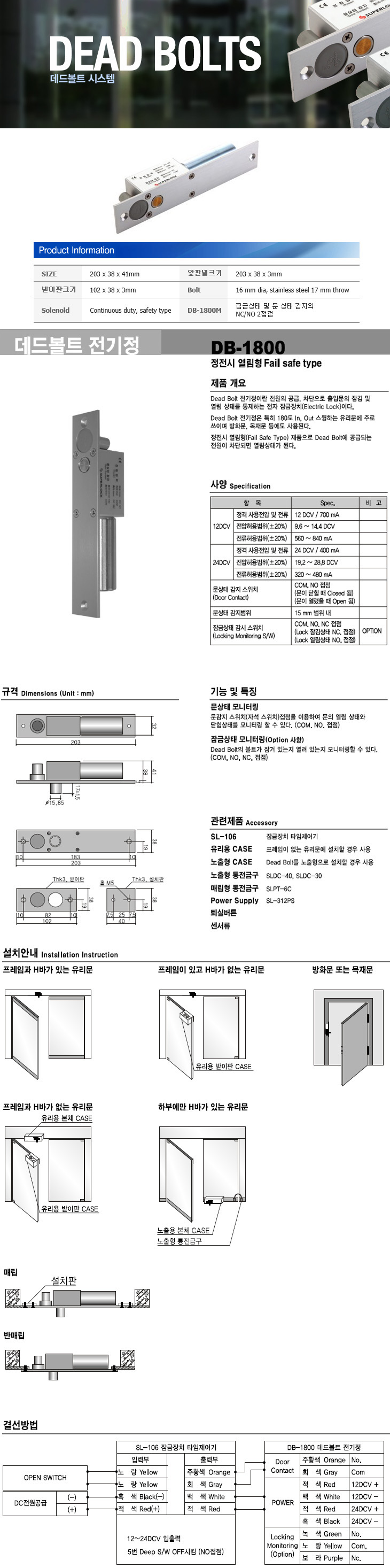 [SU] µ¥µåº¼Æ®(DB-1800, Á¤Àü½Ã ¿­¸²Çü, DC12/24V, 203x38x41mm)(Dead Bolt Fail Safe Type)