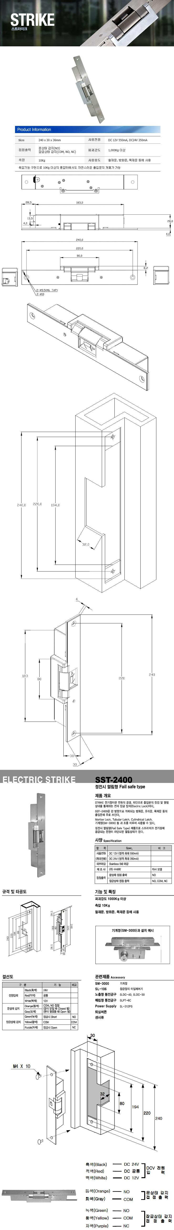 [SU] ½ºÆ®¶óÀÌÅ©¶ô(SST-2405, Á¤Àü½Ã´ÝÈûÇü, DC12/24V, öÀç¹®/¹æÈ­¹®/¸ñÀç¹®/365ÄÚ³ÊÀ¯¸®¹®, MIWA AST ȣȯ±Ô°Ý, 240x30x36mm)(Strike)