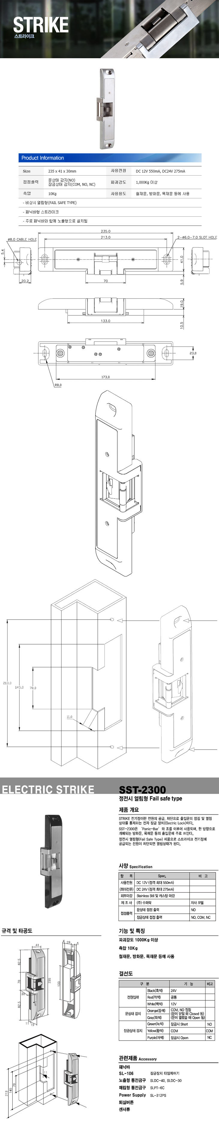 [SU] ½ºÆ®¶óÀÌÅ©¶ô(SST-2300, Á¤Àü½Ã¿­¸²Çü, DC12/24V, öÀç¹®/¹æÈ­¹®/¸ñÀç¹®, ÆÐ´Ð¹ÙÇü, 235x41x30mm)(Strike Lock)