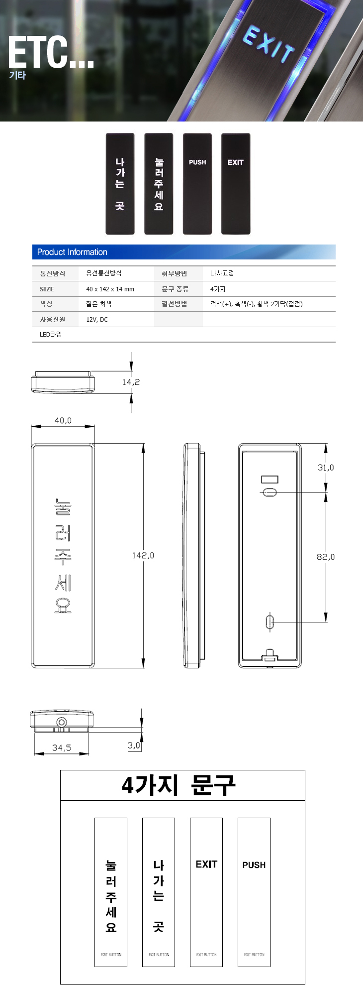 [SU] ³ëÃâÇü Åð½Ç¹öư(OS-142, ÅÍÄ¡½Ä, LEDŸÀÔ, 142x40x14mm)(Exit Button)