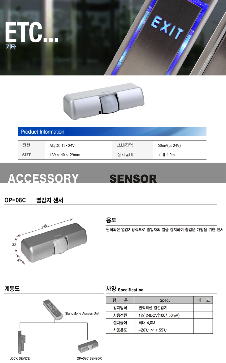 [SU] ¿­°¨Áö¼¾¼­/µµ¾î¼¾¼­(OP-08C, DC12~24V, ÃÖ´ë 4¹ÌÅͳôÀÌ, ¿øÀû¿Ü¼± ¿­¼±°¨Áö)