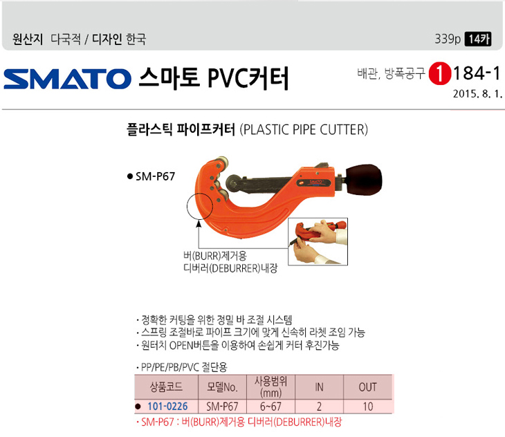 [SMATO] ÇÃ¶ó½ºÆ½ ÆÄÀÌÇÁıŸ/ÆÄÀÌÇÁÄ¿ÅÍ(SM-P67, ¹üÀ§:6~67mm, ÇÃ¶ó½ºÆ½ ÆÄÀÌÇÁÀý´Ü±â)(Plastic Pipe Cutter)