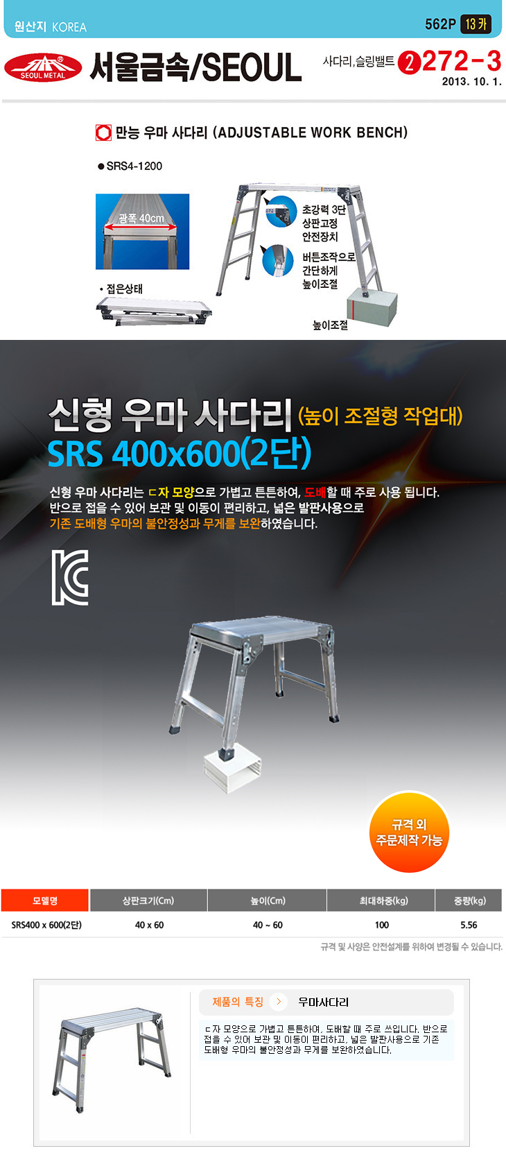 [SG]¸¸´É ¿ì¸¶»ç´Ù¸®(SRS 400x600, 2´Ü ³ôÀÌÁ¶ÀýÇü ÀÛ¾÷´ë, ³ôÀÌ 400~600mm)(Adjustable Work Bench)