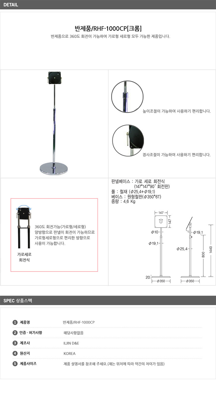 [ÀÏÁø] ½ºÅĵå ÇÁ·¹ÀÓ ¹ÝÁ¦Ç°(RHF-1000CP, ³ôÀÌ:1440mm, ½ºÆ¿, º£À̽º:¿øÇüöÆÇ, Å©·Òµµ±Ý)
