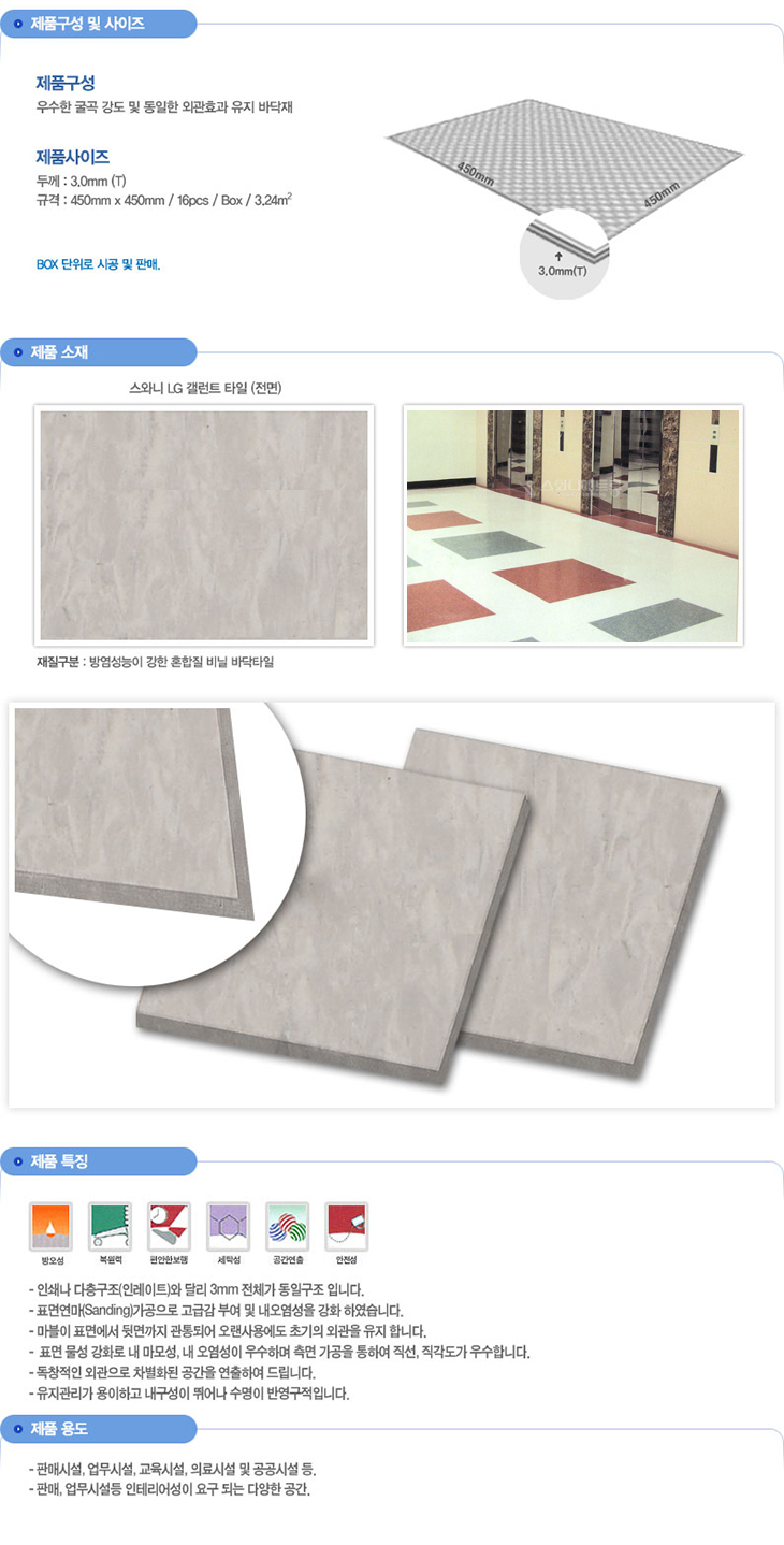 [SW] LG °¶·±Æ® ŸÀÏ(GAT-703, 16¸Å ¹­À½/¾à 1Æò½Ã°ø°¡´É, 3.0T, 450x450mm, ¸¶ºí¸µ¹«´Ì, »ó¾÷¿ë¹Ù´ÚÀç)
