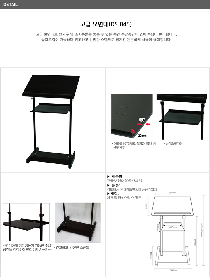 [ÀÏÁø] °í±Þ º¸¸é´ë(DS-845, ¾ÆÅ©¸±ÆÇÅ©±â:600x450mm, ³ôÀÌ:800~1600mm ³ôÀÌÁ¶Àý°¡´É, Áß°£¼ö³³°ø°£Á¦°ø)
