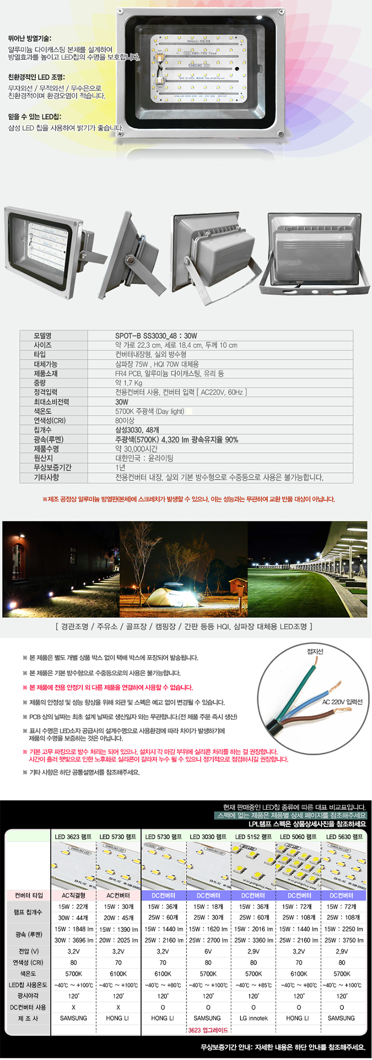 [YL] LED °íÃâ·Â Åõ±¤±â(30Watt, SPOT-V SS3030 48)