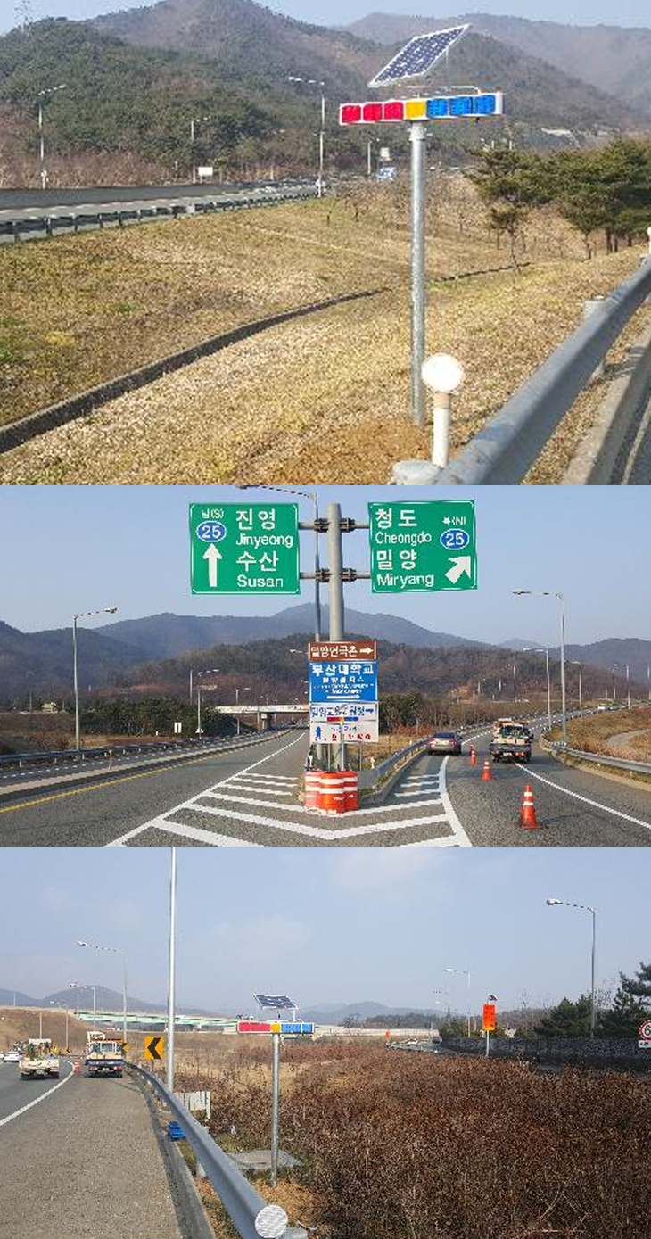 Æò¸é °î¼±ºÎµî ½Ã°è°¡ ºÒ·®ÇÑ Àå¼Ò¿¡¼ »ç°íÀ§Çè Áö¿ªÀ» ¿îÀüÀÚ¿¡°Ô ¾Ë¸®±â À§ÇÑ ½Ã¼³·Î, ž籤 °æ±¤µîÀº ½Ã¼±ÁýÁßÀÇ ±â´É°ú µ¿½Ã¿¡ »ç°íÀ§Çè Áö¿ª Á¤º¸¸¦ Çü¼ºÈ½ÃÄÑ ¿îÀüÀÚ¿¡°Ô Àü´ÞÇÏ´Â ±â´ÉÀ» °¡Áö°í ÀÖÀ¸¸ç, ƯÈ÷ ž籤 °æ±¤µîÀº °í¼ÓÁ¡¸ê ¹× ÀÚÀ¯Á¡¸ê·Î ¾ß°£ ½ÃÀμºÀ» ±Ø´ëȽÃÄÑ Á¤¸é ¹× Ãø¸é ½ÃÀμºÀ» µ¿½Ã¿¡ È®º¸ÇÒ ¼ö ÀÖ½À´Ï´Ù.