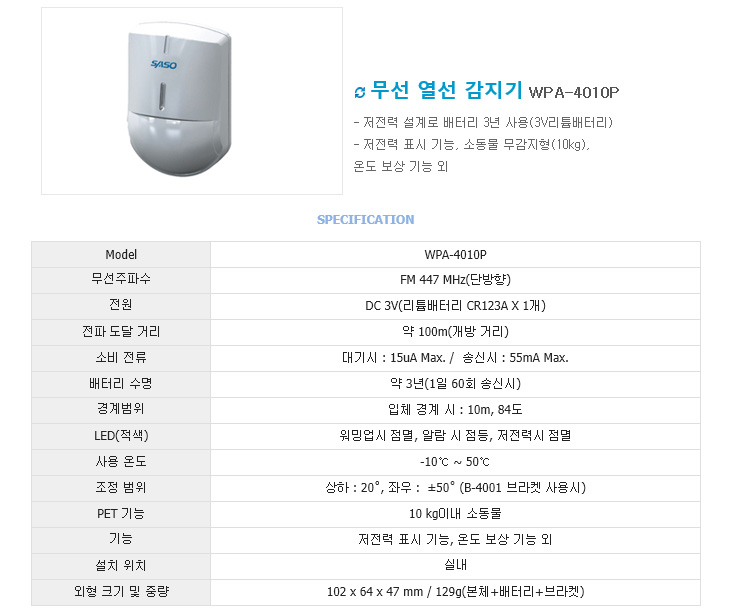 [SASO] (WPA-4010P, FM 447 MHz, DC 3V, ִȣ۰Ÿ:100, ý)=>ǰ!