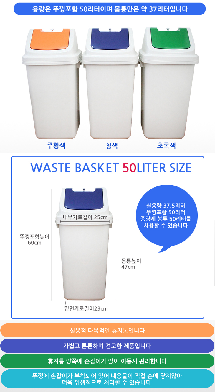 [WT] »ç°¢ ´ëÇü ÈÞÁöÅë/¾²·¹±âÅë(50¸®ÅÍ, ³ôÀÌ:600x¹Ø¸é230mm)