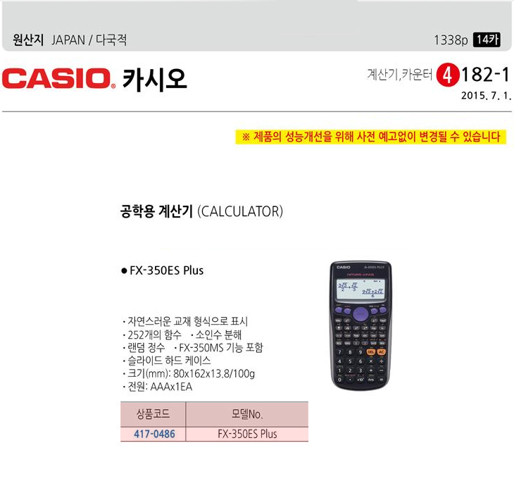 [Ä«½Ã¿À] °øÇпë°è»ê±â(FX-350ES, 252°³ ÇÔ¼ö)(Calculator)