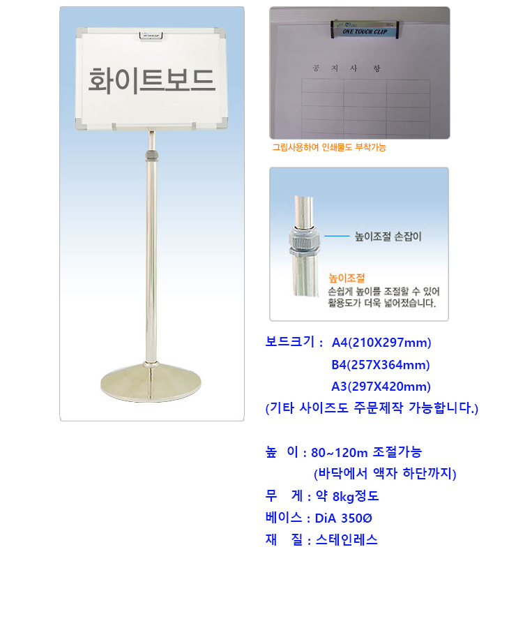 [KJ] ½ºÅÙ·¹½º È­ÀÌÆ®º¸µå ½ÎÀÎÆú(KP-6AJ-WB, IÇü, A4/B4/A3 ¼±Åð¡´É, ¾È³»/È«º¸/À¯µµ °Ô½ÃÆÇ)