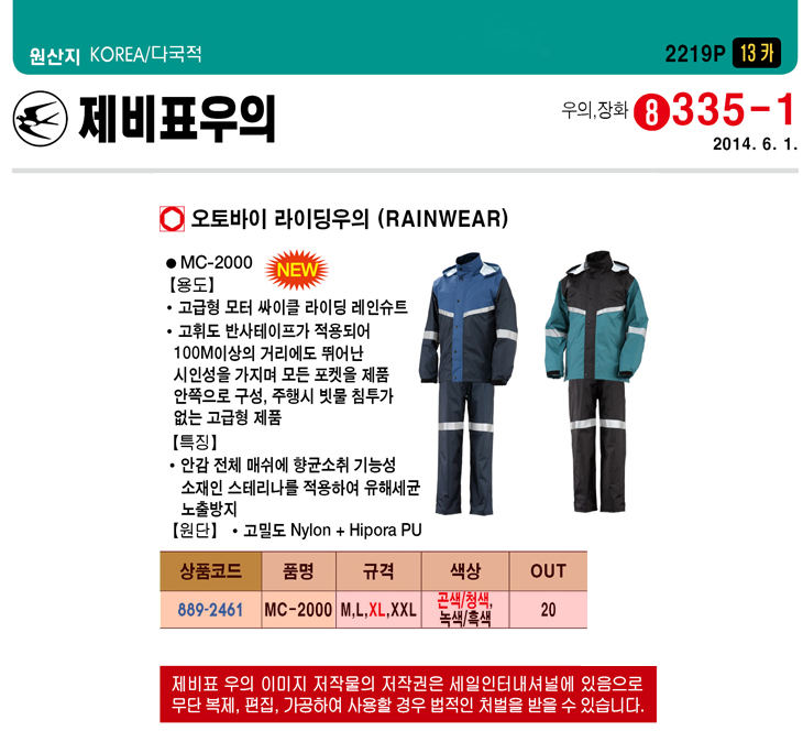 [Á¦ºñÇ¥¿ìÀÇ]¿ÀÅä¹ÙÀÌ ¶óÀ̵ù ¿ìÀÇ/Äü¼­ºñ½º ¿ìÀÇ(MC-2000N, ³ªÀÌ·Ð+ÇÏÀÌÆ÷¶ó PU)(Rainwear)