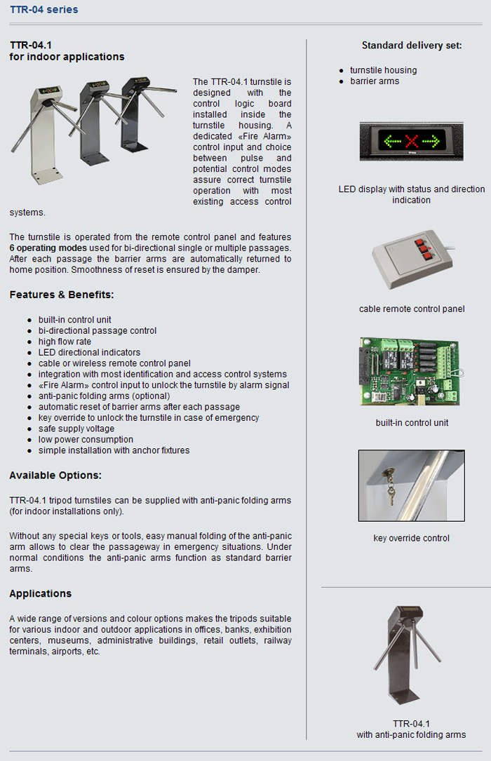 The TTR-04 series consists of TTR-04.1 model with built-in control unit for indoor applications and TTR-04W-24 model with remote control unit for outdoor applications (under shelter).
