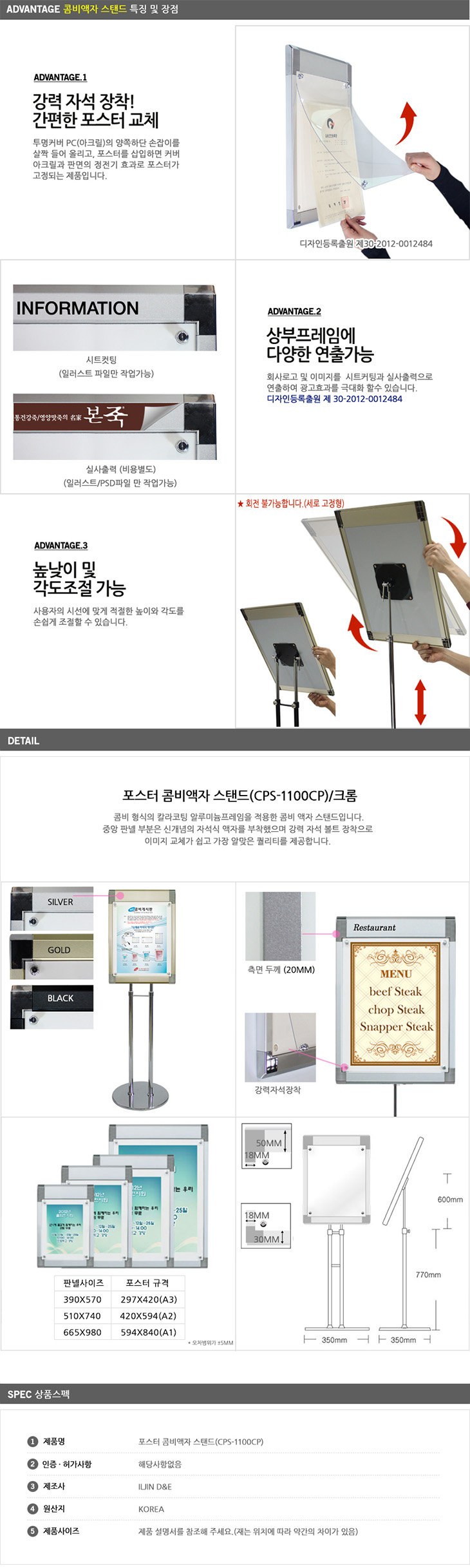 [ÀÏÁø] Àü½Ã¿ë Æ÷½ºÅÍ ÄÞºñ ¾×ÀÚ ½ºÅĵå(CPS-1100CP, Å©·Òµµ±Ý, »çÀÌÁî A3/A2/A1¿ë ¼±Åð¡´É)