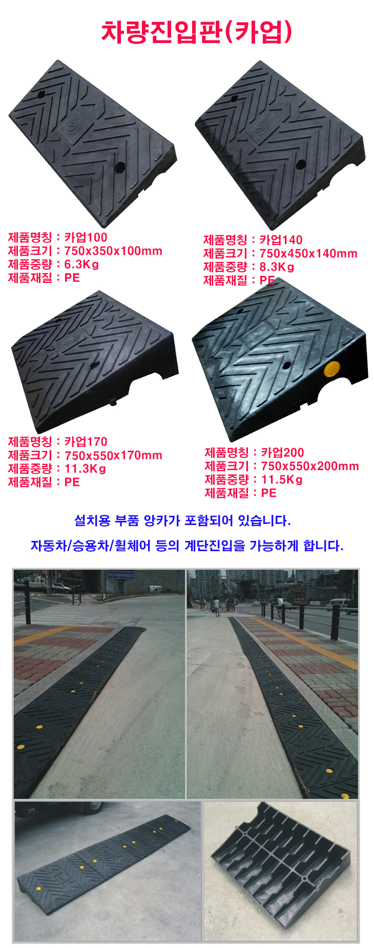 [HK] Â÷·®ÁøÀÔÆÇ/°æ»ç·ÎÁøÀÔÆÇ/Ä«¾÷(750x450x140,8.3Kg,¾ÓÄ«Æ÷ÇÔ)(Threshold Ramp/Rubber Curb Ramp/Kerb Ramp)