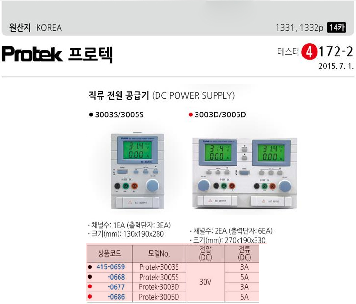 [ÇÁ·ÎÅØ/PROTEK] Á÷·ùÀü¿ø°ø±Þ±â/Á÷·ùÀü¿ø°ø±ÞÀåÄ¡/DC ÆÄ¿ö¼­¸¦¶óÀÌ(Protek-3005S, 30V 5Amps, 1ä³Î)(DC Power Supply)