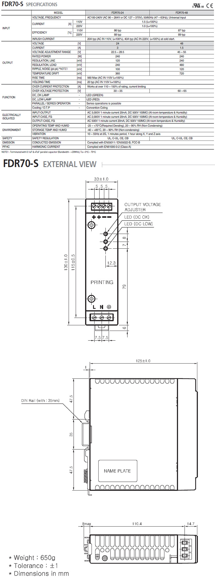 [¿À¸®¿£Æ®ÀüÀÚ/È­ÀÎ½ãÆ®·Î´Ð½º] Àü¿ø°ø±ÞÀåÄ¡/ÆÄ¿ö¼­ÇöóÀÌ(FDR70-Series, FDR70-05/FDR70-12/FDR70-24/FDR70-48, 70Watt, DIN Rail,
