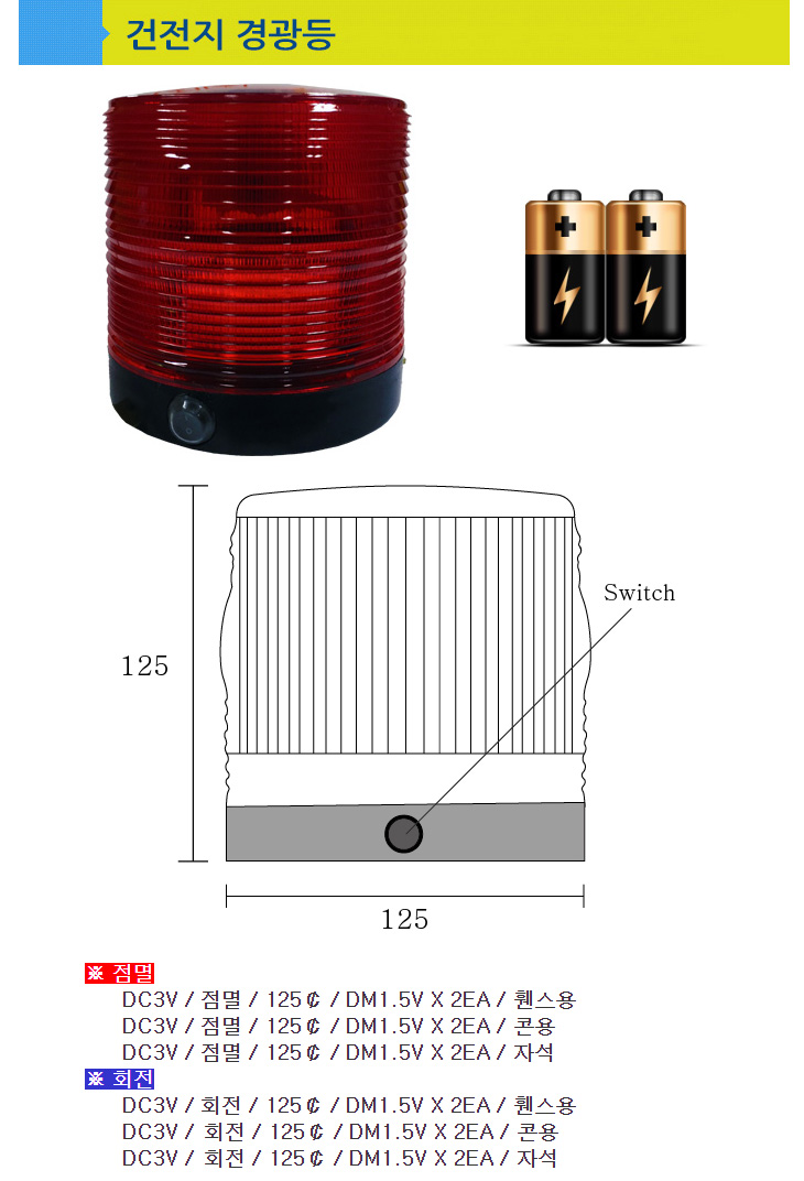 [¸®´õ] °ÇÀüÁö °æ±¤µî(125ÆÄÀÌ, 3V, Á¡¸ê½Ä/ȸÀü½Ä ¼±Åð¡´É)