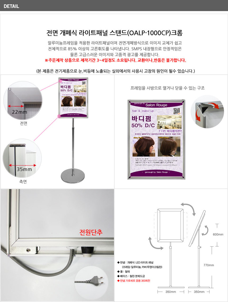 [ÀÏÁø] Àü¸é °³Æó½Ä ¶óÀÌÆ®ÆÐ³Î ½ºÅĵå(OALP-1000CP, Å©·Ò/½Ç¹ö, A3/B3 ¼±Åð¡´É, °£ÆíÇÑ Æ÷½ºÅÍ ±³Ã¼ °Ô½ÃÆÇ, ¿øÅÍÄ¡ ȸÀü)