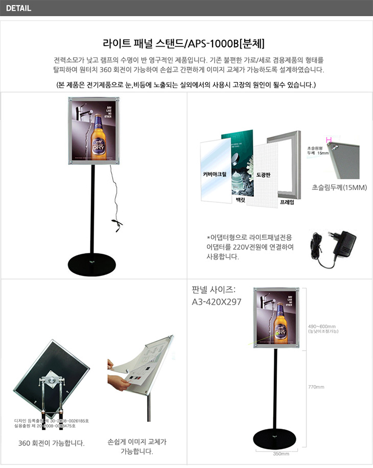 [ÀÏÁø] ¶óÀÌÆ® ÆÐ³Î ½ºÅĵå ÀÔ°£ÆÇ °Ô½ÃÆÇ(APS-1000B, ºí·¢ºÐüµµÀå, A3»çÀÌÁî:297x420mm, 220V ¾î´ðÅÍ Æ÷ÇÔ)