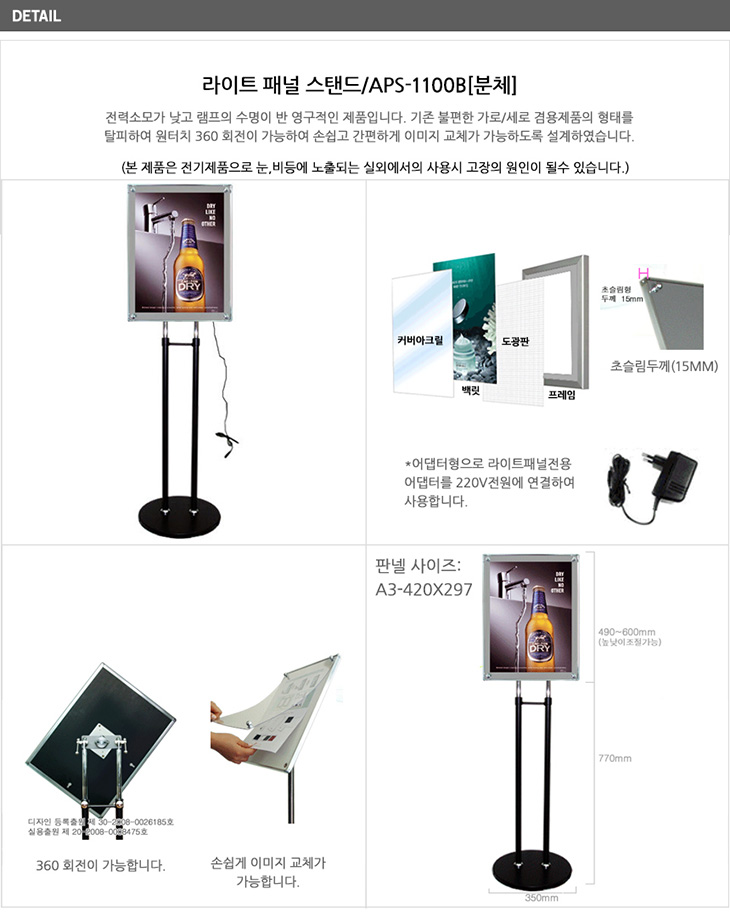 [ÀÏÁø] ¶óÀÌÆ® ÆÐ³Î ½ºÅĵå ÀÔ°£ÆÇ °Ô½ÃÆÇ(APS-1100B, ºí·¢ºÐüµµÀå, A3»çÀÌÁî:297x420mm, 220V ¾î´ðÅÍ Æ÷ÇÔ)