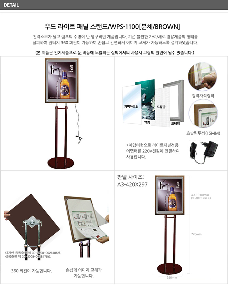 [ÀÏÁø] ¶óÀÌÆ® ÆÐ³Î ½ºÅĵå ÀÔ°£ÆÇ °Ô½ÃÆÇ(WPS-1100, ºê¶ó¿îºÐüµµÀå, A3»çÀÌÁî:297x420mm, 220V ¾î´ðÅÍ Æ÷ÇÔ)