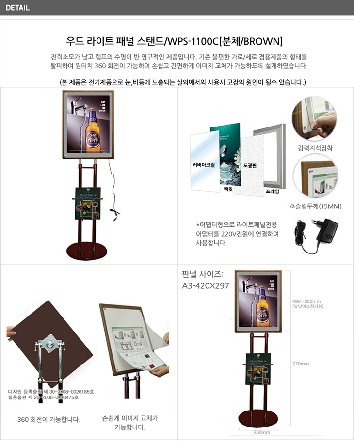 [ÀÏÁø] ¶óÀÌÆ® ÆÐ³Î ½ºÅĵå īŻ·Î±×¼ö³³ ÀÔ°£ÆÇ °Ô½ÃÆÇ(WPS-1100C, ºê¶ó¿îºÐüµµÀå, A3»çÀÌÁî:297x420mm, 220V ¾î´ðÅÍ Æ÷ÇÔ)