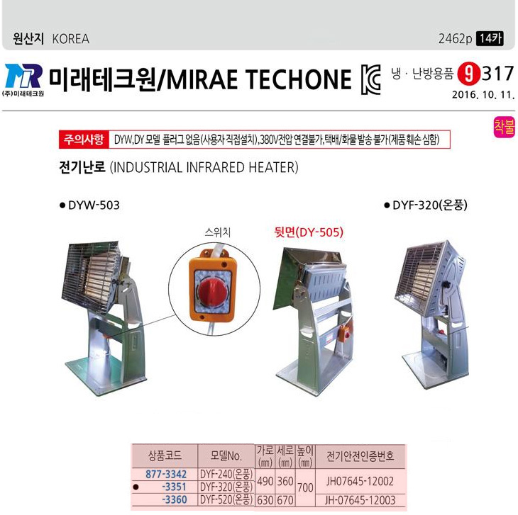 [¹Ì·¡] »ê¾÷¿ë Àü±â³­·Î/Àü±âÈ÷ÅÍ/³­¹æ¿ëǰ(DYW-503/DY-505, »ê¾÷¿ëÈ÷ÅÍ)(Industrial Infrared Heater)=>Á¦Ç°´ÜÁ¾!