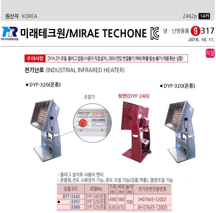 [¹Ì·¡] »ê¾÷¿ë Àü±â³­·Î/Àü±âÈ÷ÅÍ/³­¹æ¿ëǰ(DYF-240/DYF-320/DYF-520, ¿Âdz »ê¾÷¿ëÈ÷ÅÍ)(Industrial Infrared Heater)=>Á¦Ç°´ÜÁ¾!