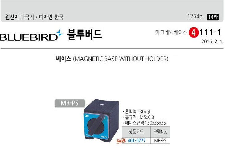 [ºí·ç¹öµå] ¸¶±×³×ƽº£À̽º(MB-PS, Ȧ±Ô°Ý:M5x0.8/º£À̽º±Ô°Ý:30x35x35mm)(Magnetic Base)