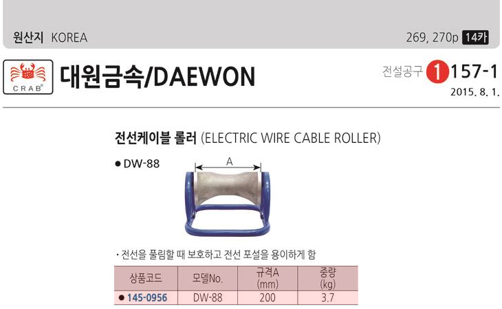 [´ë¿ø±Ý¼Ó] Àü¼±ÄÉÀÌºí ·Ñ·¯/Àü¼± Ç®¸µ ·Ñ·¯/Ç®¸µ ·Î¶ó(DW-88, ±Ô°Ý:200mm)(ELectric Wire Cable Roller)