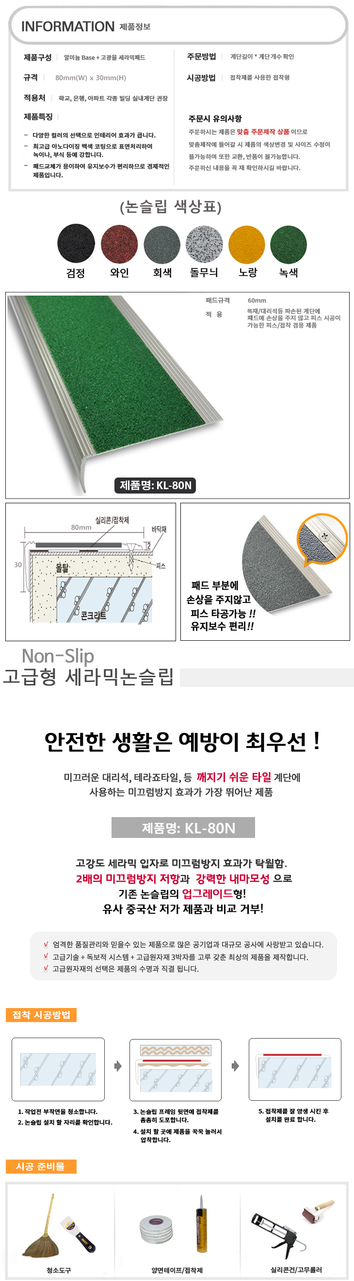 [MRE] ¾Ë·ç¹Ì´½ ¼¼¶ó¹Í °è´Ü ³í½½¸³/¹Ì²ô·³¹æÁö(KL-80N, 80x30mm, ÆÄ¼Õ°è´Ü º¸¼ö¿ë °í°­µµ ¼¼¶ó¹Í ÆÐµå ºÒ¿¬ ³í½½¸³/¹Ì²ô·³¹æÁö)