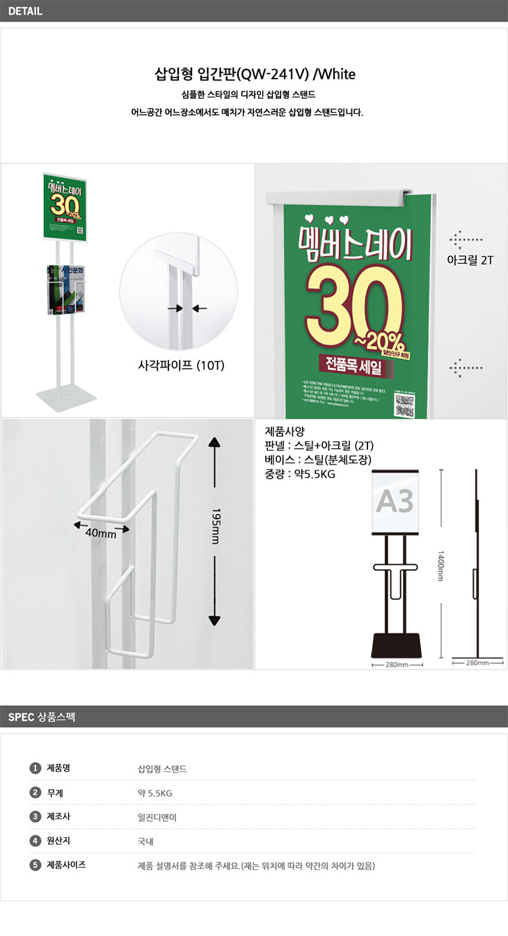 [ÀÏÁø] »ðÀÔÇü½ºÅĵå QB-241V White, A3 ¼¼·ÎÇü, Æ÷½ºÅÍ »ðÀÔÇü ½ºÅĵå ÀÔ°£ÆÇ/°Ô½ÃÆÇ/¾È³»´ë/¾È³»ÆÇ/Àü½Ã¿ë Æ÷½ºÅÍ, īŻ·Î±× ½ºÅĵå)