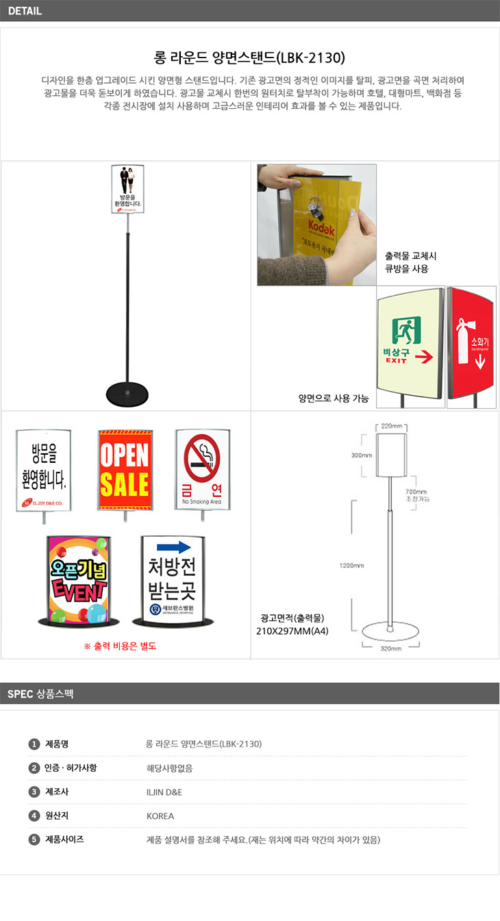 [ÀÏÁø] ·Õ ¶ó¿îµå ¾ç¸é½ºÅĵå(LBK-2130, ºí·¢ A4 Àμâ¸é, Æ÷½ºÅÍ »ðÀÔÇü ½ºÅĵå ÀÔ°£ÆÇ/°Ô½ÃÆÇ/¾È³»´ë/¾È³»ÆÇ/Àü½Ã¿ë Æ÷½ºÅÍ)