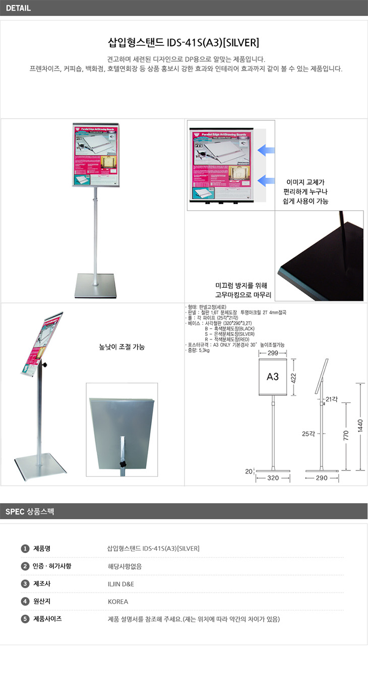 [ÀÏÁø] »ðÀÔÇü½ºÅĵå(IDS-41B Black, A3 Æ÷½ºÅÍ »ðÀÔÇü ½ºÅĵå ÀÔ°£ÆÇ/°Ô½ÃÆÇ/¾È³»´ë/¾È³»ÆÇ/Àü½Ã¿ë/»óǰȫº¸ Æ÷½ºÅÍ)