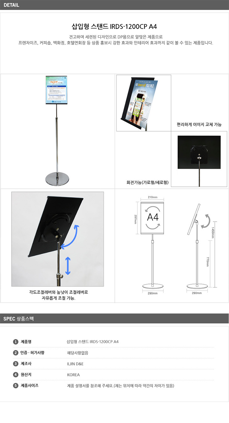 [ÀÏÁø] »ðÀÔÇü ½ºÅĵå(IRDS-1200CPA4, Å©·Òµµ±Ý °¡·Î¼¼·Î Àüȯ ȸÀüÇü, A4 Æ÷½ºÅÍ »ðÀÔÇü ½ºÅĵå ÀÔ°£ÆÇ/°Ô½ÃÆÇ/¾È³»´ë/¾È³»ÆÇ/Àü½Ã¿ë Æ÷½ºÅÍ)