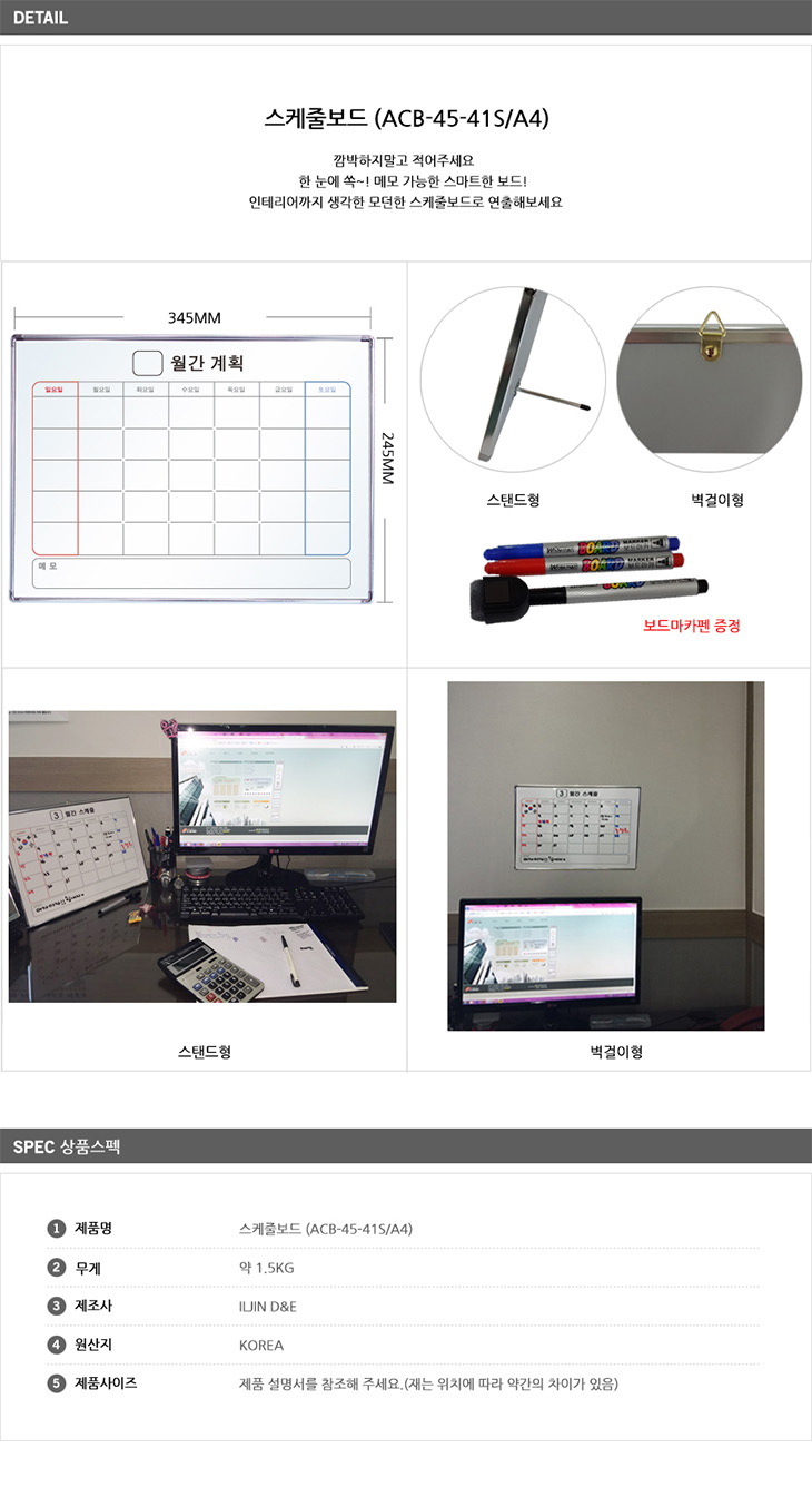 [ÀÏÁø] ¼ÒÇü ½ºÄÉÁÙº¸µå(ACB-45-41S/A4 ½Ç¹ö, ÇÑ±Û ¿ù°£ °èȹǥ/¿ùÁßÇà»çÇ¥, Æ÷½ºÅÍ Å¹»ó¿ë ½ºÅĵå, ½ºÄÉÁ캸µå)