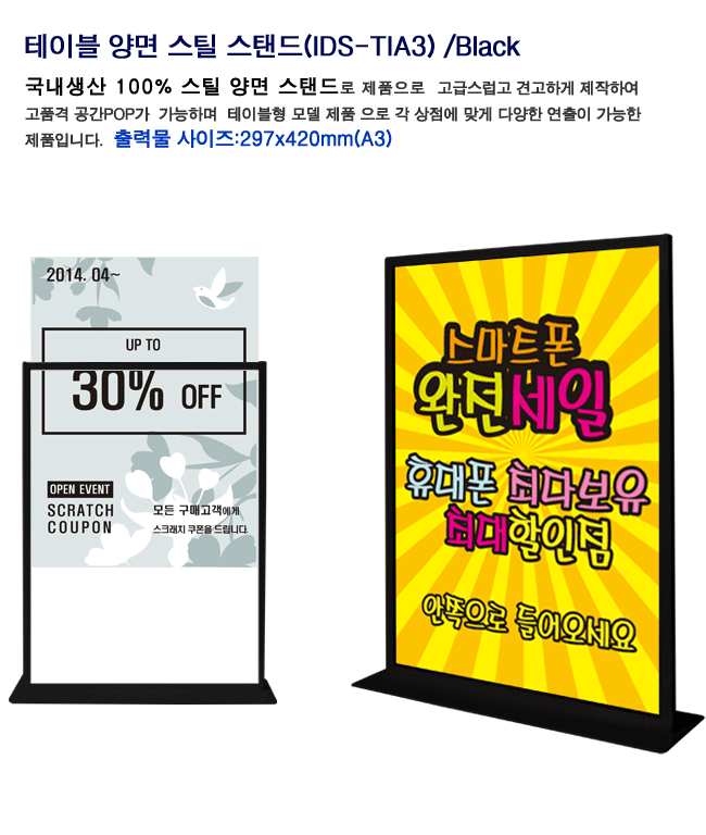 [ÀÏÁø] Å×ÀÌºí ½ºÆ¿ ½ºÅĵå(IDS-TIA3 Black, ½½¶óÀÌµå ¹æ½Ä, ¾ç¸é ½ºÅĵå, °íǰ°Ý POP, 297x425mm A3»çÀÌÁî)