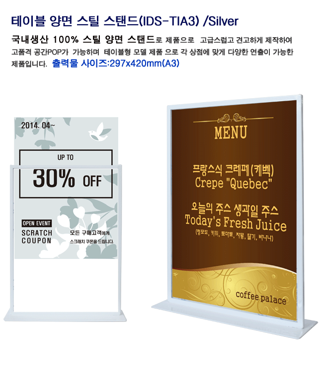 [ÀÏÁø] Å×ÀÌºí ½ºÆ¿ ½ºÅĵå(IDS-TIA3 Silver, ½½¶óÀÌµå ¹æ½Ä, ¾ç¸é ½ºÅĵå, °íǰ°Ý POP, 297x425mm A3»çÀÌÁî)