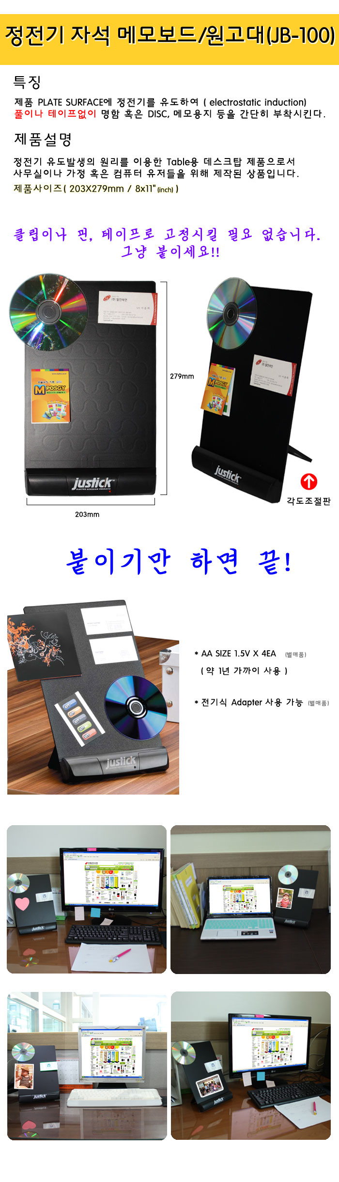 [ÀÏÁø] Á¤Àü±â ÀÚ¼® ¸Þ¸ðº¸µå/¿ø°í´ë(JB-100, 203x279mm, ¸íÇÔ/¸Þ¸ðÁö/CD ºÎÂø, Justick Á¦Ç°)