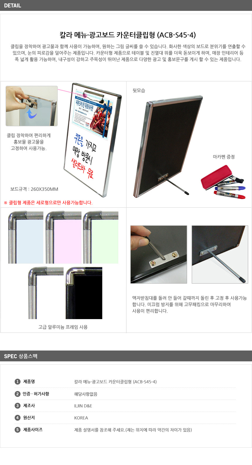 [ÀÏÁø] Ä®¶ó ¸Þ´º¡¤±¤°íº¸µå Ä«¿îÅÍ Å¬¸³Çü(ACB-S45-4, 260x350mm, ¸¶Ä«Ææ Æ÷ÇÔ, Å×À̺í/Áø¿­´ë¿ë POP)