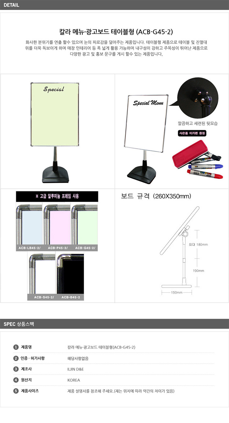 [ÀÏÁø] Ä®¶ó ¸Þ´º¡¤±¤°íº¸µå Å×À̺íÇü(ACB-G45-2, 260x350mm)