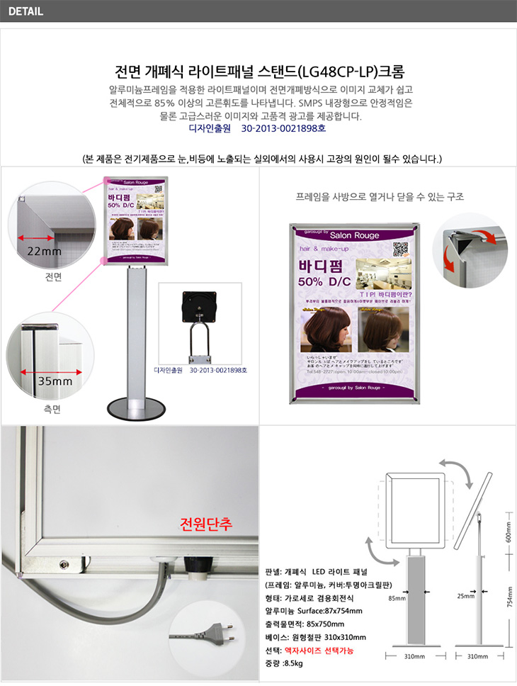 [ÀÏÁø] Àü¸é °³Æó½Ä ¶óÀÌÆ®ÆÐ³Î ½ºÅĵå(LG48CP-LP, Å©·Ò/½Ç¹ö, A4/B4/A3/B3 ¼±Åð¡´É, °£ÆíÇÑ Æ÷½ºÅÍ ±³Ã¼ °Ô½ÃÆÇ, ¿øÅÍÄ¡ ȸÀü)