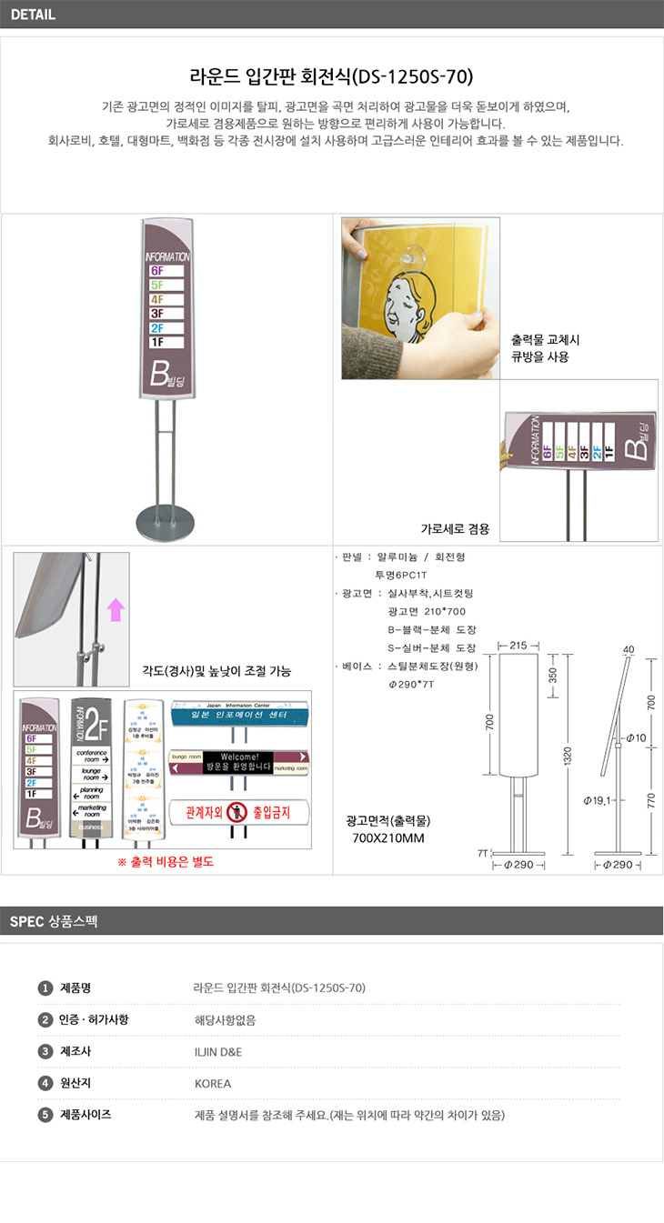 [ÀÏÁø] ¶ó¿îµå ÀÔ°£ÆÇ ȸÀü½Ä(DS-1250S-70, °¡·Î¼¼·Î°â¿ë, ½Ç¹ö, ¾ç¸éÇü, È£ÅÚ/´ëÇü¸¶Æ®m/¹éÈ­Á¡/Àü½ÃÀå ¾È³», ±¤°í¸é:850x210mmm, ¾Ë·ç¹Ì´½+Åõ¸íPC)