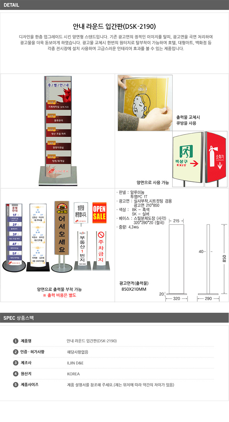 [ÀÏÁø] ¾È³» ¶ó¿îµå ÀÔ°£ÆÇ(DSK-2190, ½Ç¹ö, ¾ç¸éÇü, È£ÅÚ/´ëÇü¸¶Æ®m/¹éÈ­Á¡/Àü½ÃÀå ¾È³», ±¤°í¸é:850x210mmm, ¾Ë·ç¹Ì´½+Åõ¸íPC)